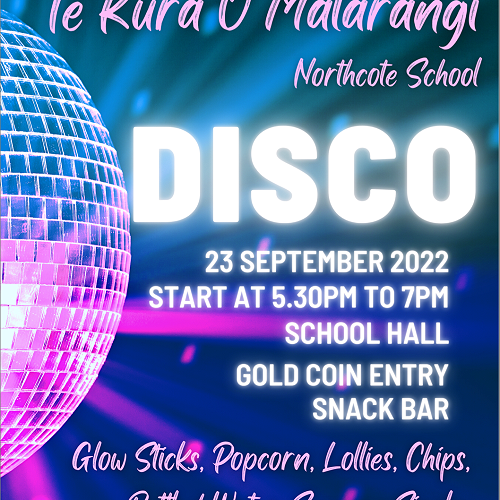 On Friday 23rd September the PTA will be running a school disco for students of our school. All students MUST be collected from the hall by a caregiver at the end of the disco. Gold coin entry, plus snacks and glow sticks will be available to buy.