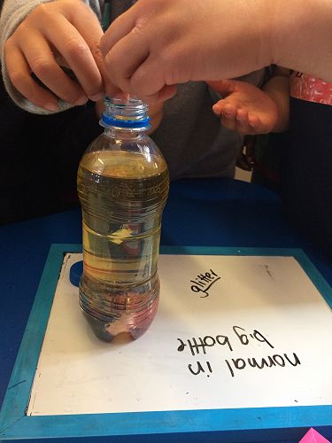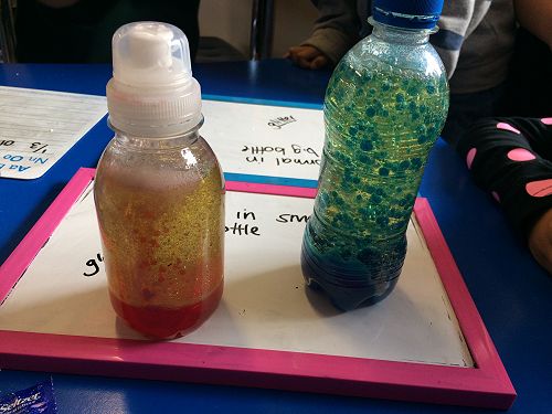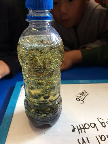 We also made the standard mix in two different sized bottles. The bigger bottle had 'bigger bubbles' and the bubbles travelled up and around like a lava lamp would.