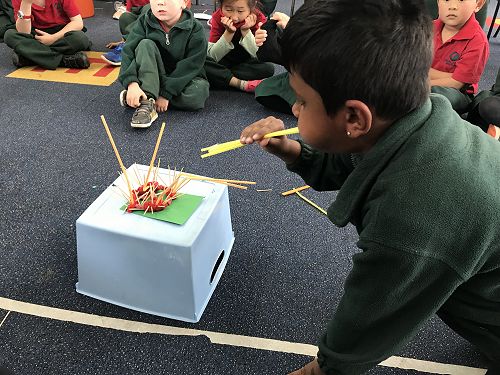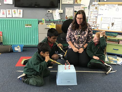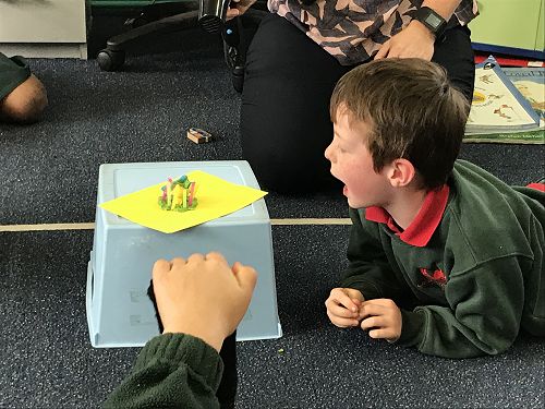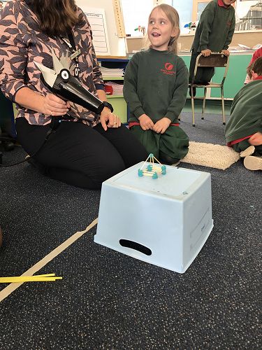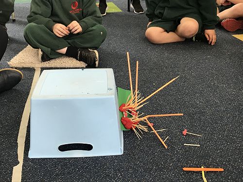 When it came time for our inquiry lesson, we had two of our students who acted as a ‘Big Bad Wolf’ but they had created their own rocket launches to try and push down the houses. Isaiah and Kavnick had taken their knowledge from our Push and Pull lessons and the visit from Richard the Scientist, to design and build rocket launches from straws, sellotape, toothpicks and match sticks. They spent a couple of days working out how to make the most powerful and reliable launches.