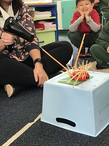 Once we became really familiar with the story, the students in 1RPH and 1BP were set a challenge! They had to put themselves into the minds of the three little pigs, and design and build a house to stand up against the BIG BAD BLOW-DRYER.