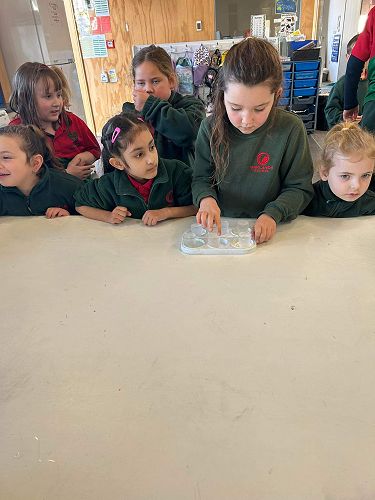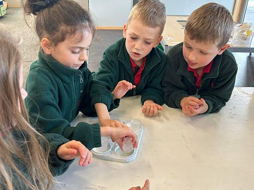 We have been starting off our week with an experiment that the children write about for the rest of the week. For Mrs Mclaughlan's writing group we looked at the dispersion of different substances when mixed with water (sand, sugar, and salt). In Miss Gledhill's class we experimented with salt to make salt crystals. In Mrs Falconers writing class we looked at ice, observing ice melting, and how different substances impacts how fast ice melts