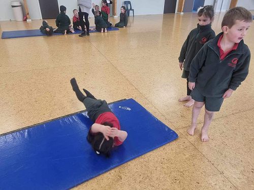 We have finally started our gymnastics unit. The tamariki looked at simple moves like a straddle, puck, stretch, and tuck. They also experimented with different moves to create their own gymnastics routine. This will continue for the next few weeks.