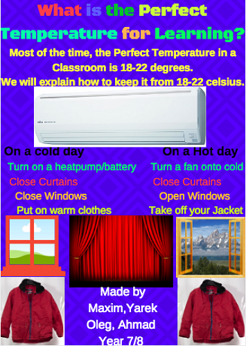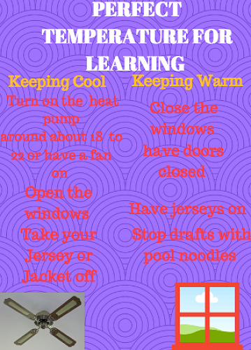 The issue: The temperature of the learning spaces at Oaklands School needs to be ‘just right’ to allow learning to happen. It’s difficult to achieve the perfect temperature for learning. Something needs to be done. It’s time to apply your knowledge of heating and cooling to help yourselves & others.
