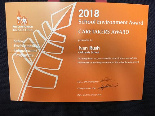 Oaklands School was presented with a John Macaulay award for 10 years participation in the programme. We also were awarded with a Caretakers award, a Waste Minimisation and Recycling award and a highly commended award for our school enhancement programme.