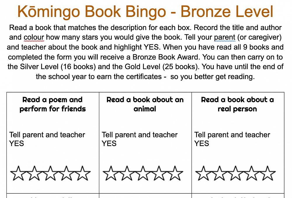 All students will start with Bronze which most will complete this term. It is important that students are reading books at their reading level to get the most from this challenge. Once this level is completed they will have the Silver Level released to them. The resources are kept in a Google Classroom that students have access to. Here is a link to the Bronze levels challenges for your information.
