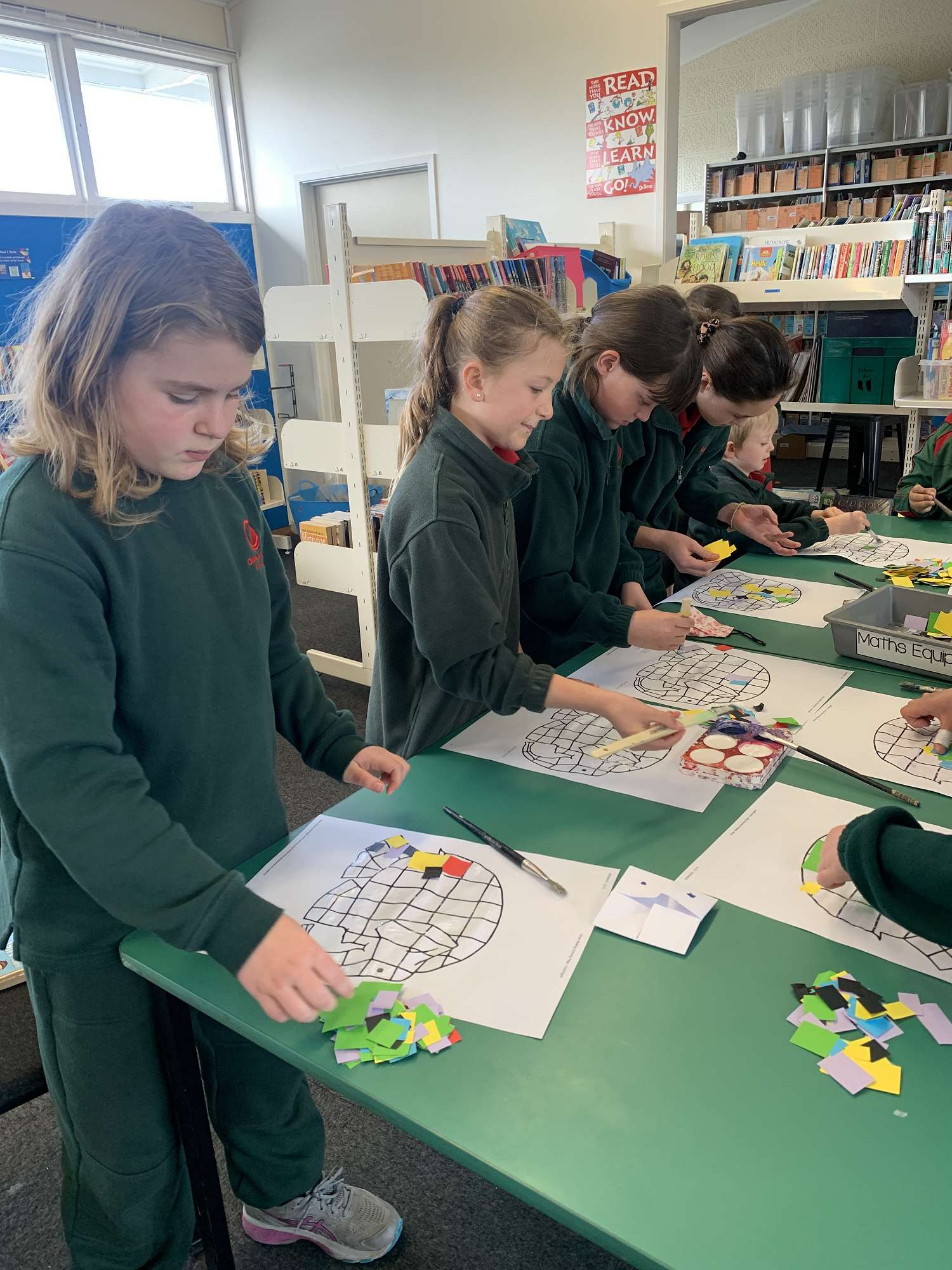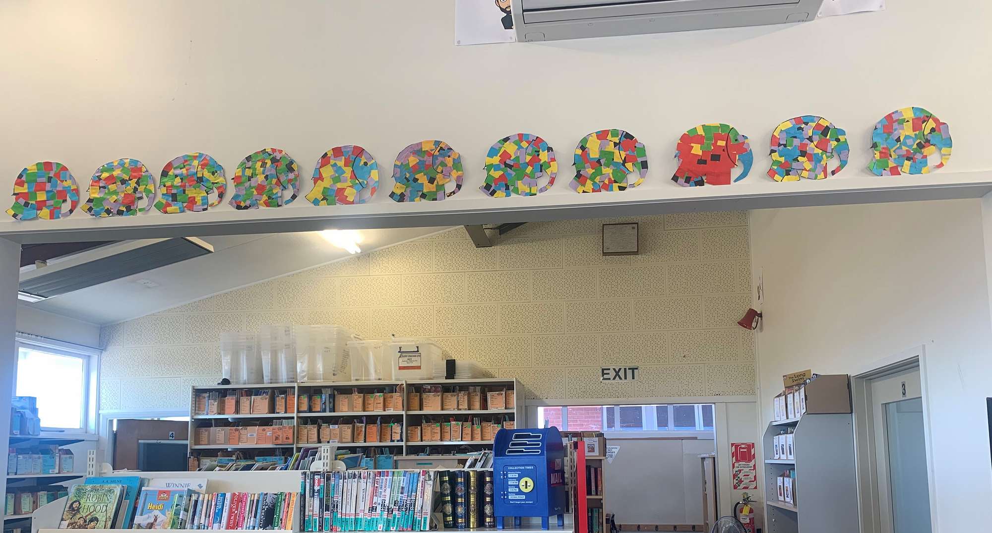 Arsh organised a working bee to make Elmer elephants to brighten up the library.