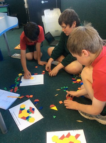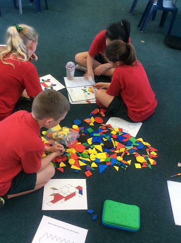 Creating tessellations, designs using 2D shapes where the straight edges fit together is another learning activity, which the students get very engaged in.