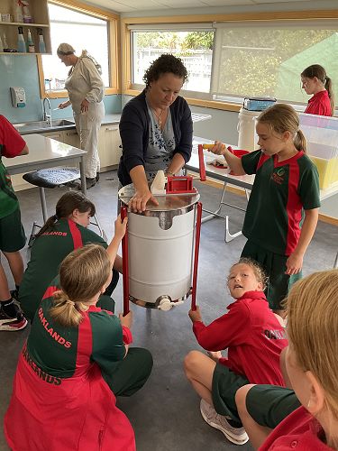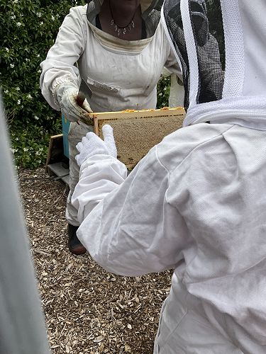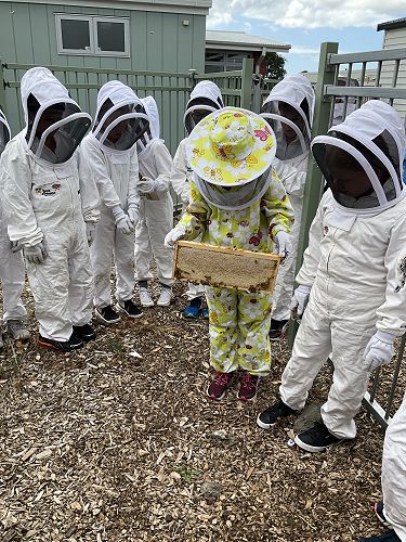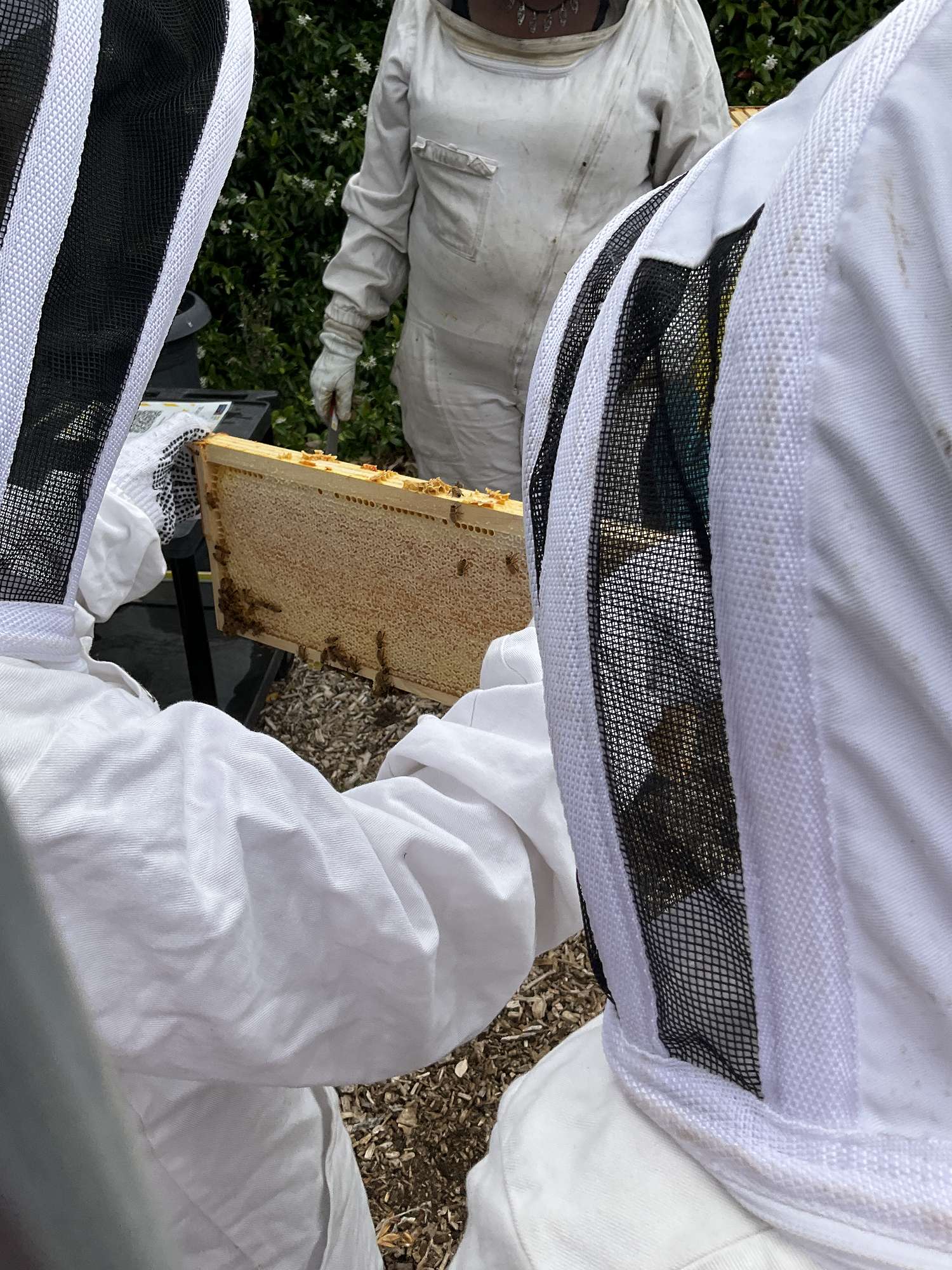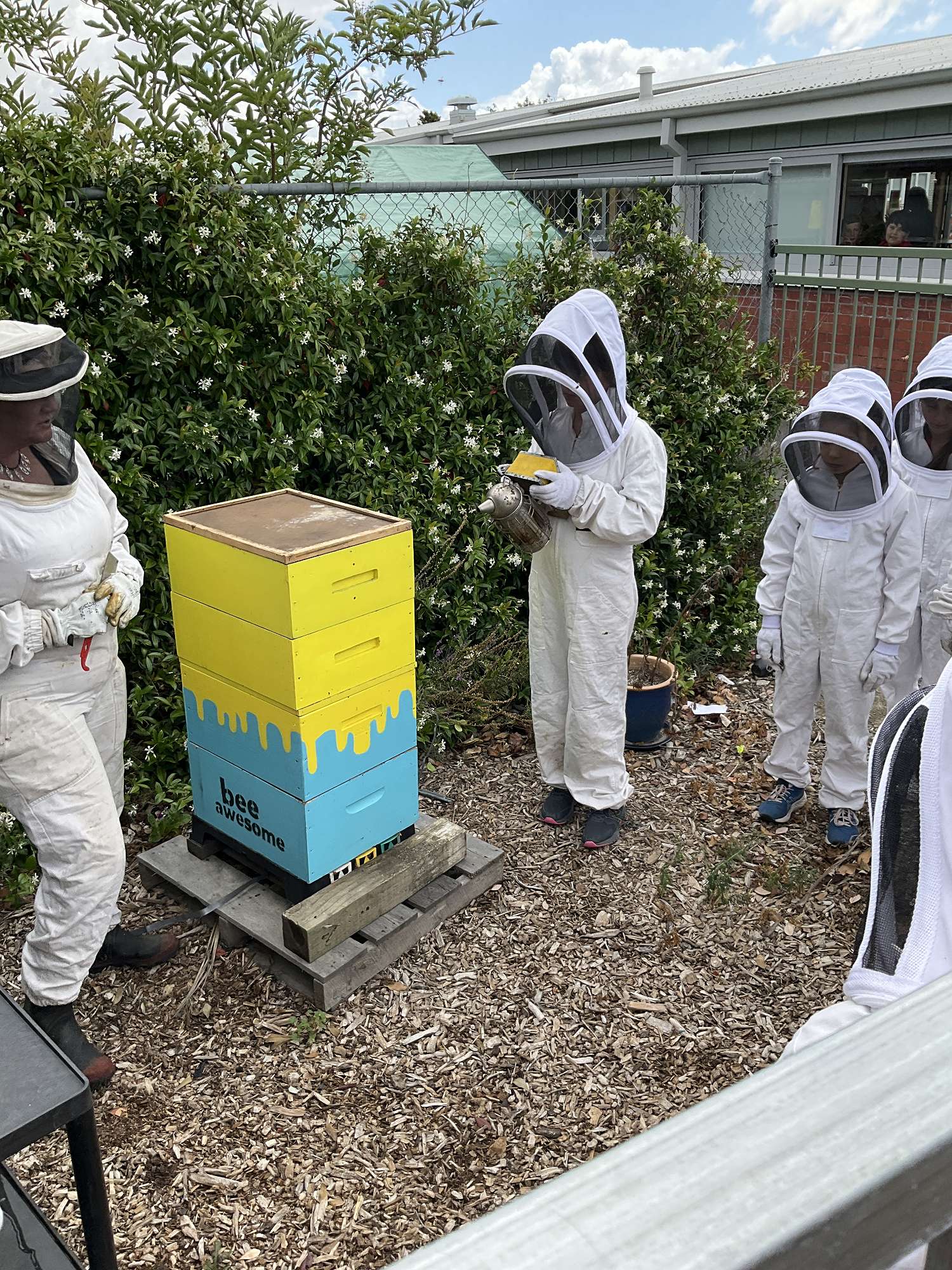 The students were able to kit up in bee suits and open up the beehive to have a look inside and see how the bees were going.