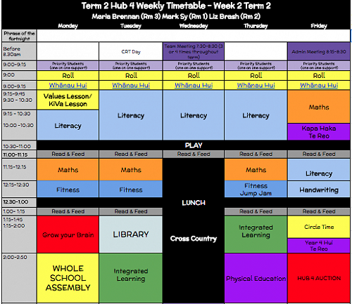 Photo by Maria Brennan Term 2 Week 2 Timetable Maria Brennan — May 4th, 2018 Check out what's happening next week in the Year 4 Hub Gallery