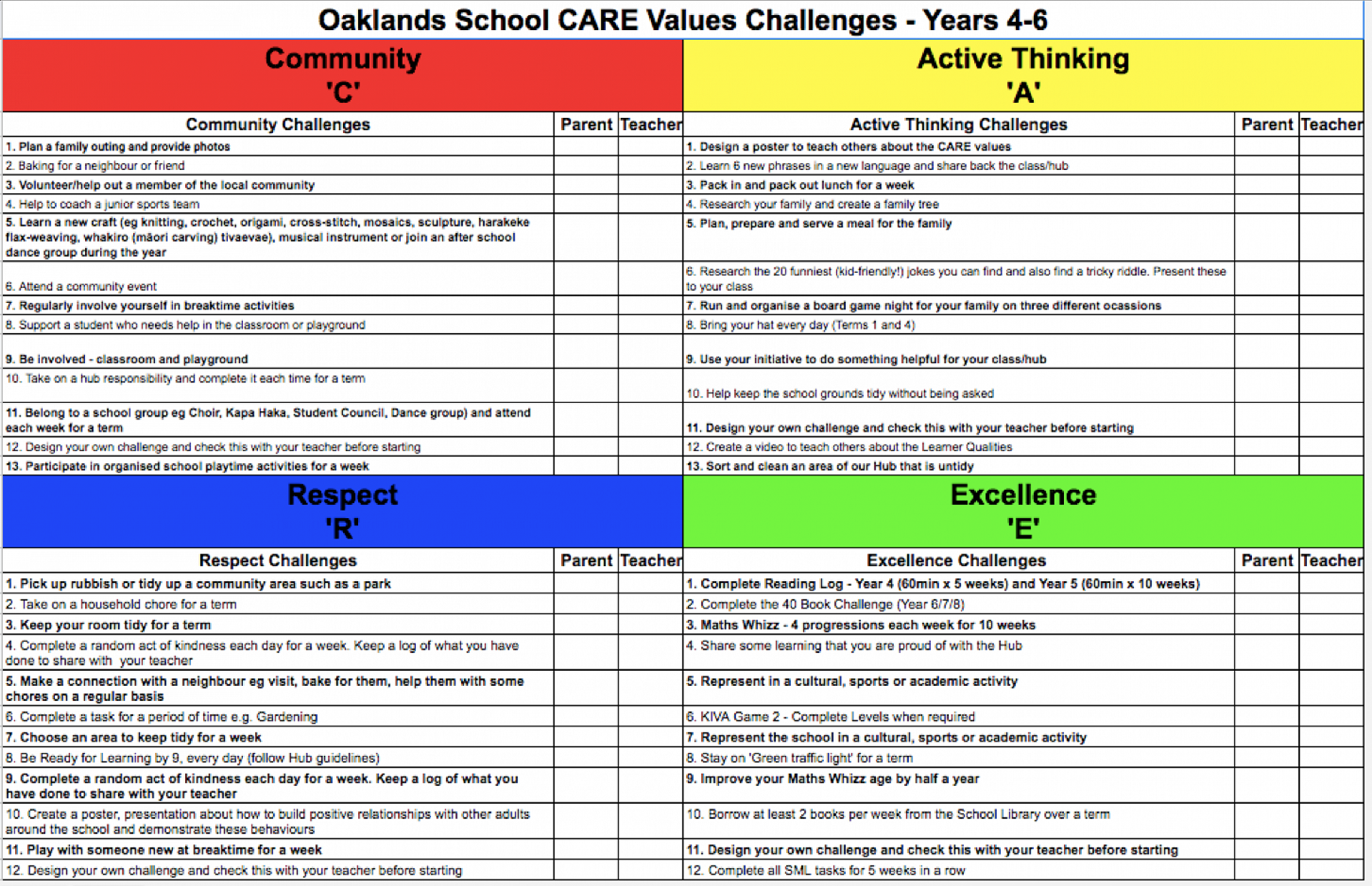 Now is as important time as ever for our students to display CARE values. Here is a list of some of them that they can be doing to express them. Please take photos of these ones too!