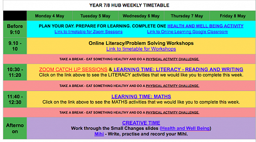 Here is a outline of the learning that is to be completed this coming week through distance learning. Please note, there's some new learning under Literacy (Punctuation Ladder) and Creative Time (Mihi Assignment), otherwise most learning expectation are the same as the last few weeks. There is a substantial amount of learning that should keep them busy through the week.