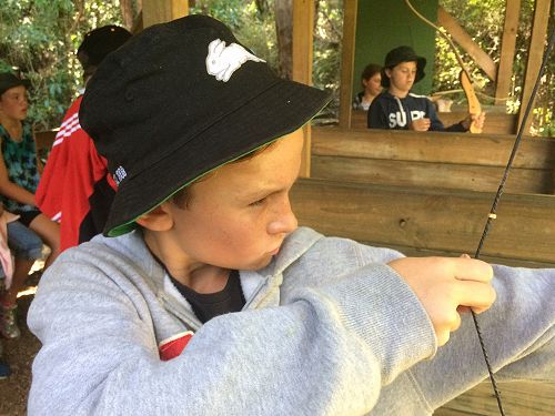 At Archery the first thing we did was learn how to use the bow and arrow. Next we got to have a go shooting it. After that we played heaps of game like Speed archery, Beat your partner by getting it closer to the bulls eye and a competition versing everyone.