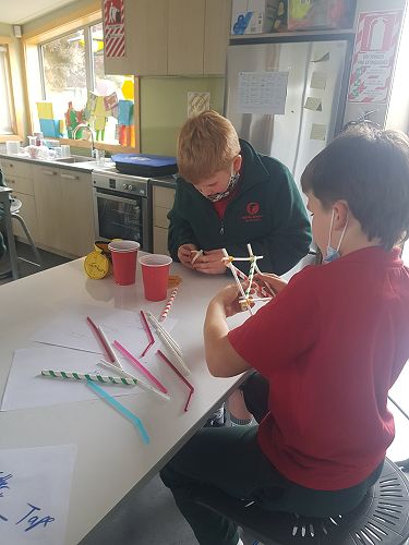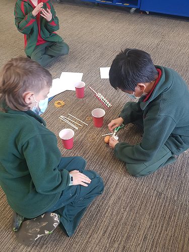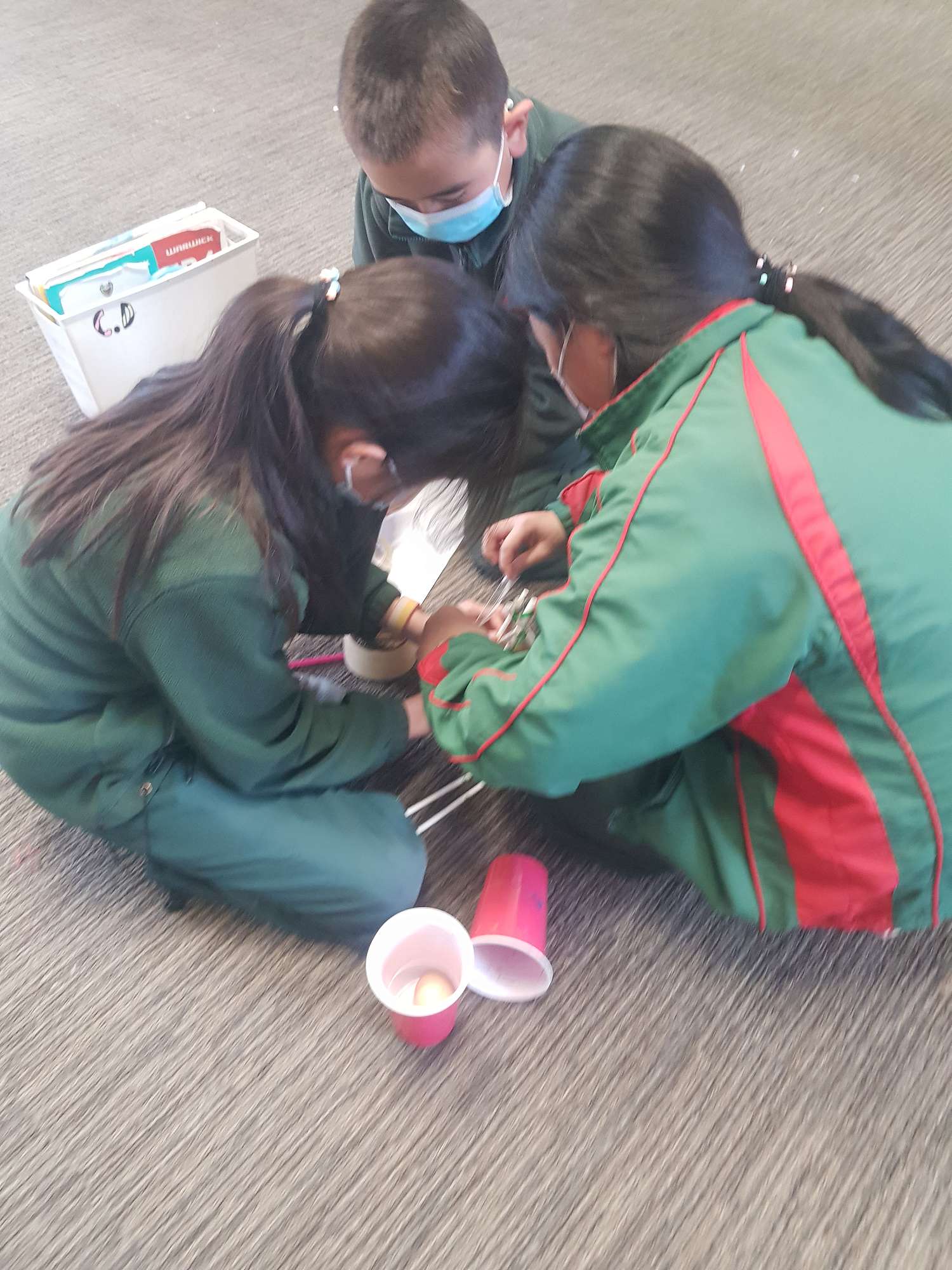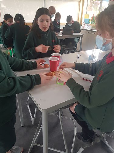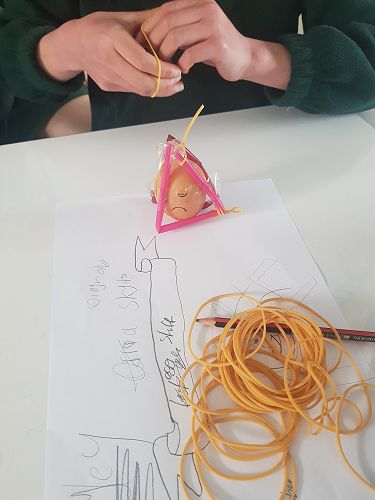 The Science group today were challenged to construct a frame and support that when an egg is dropped from a height it would not break. See the photos as to what they were doing.
