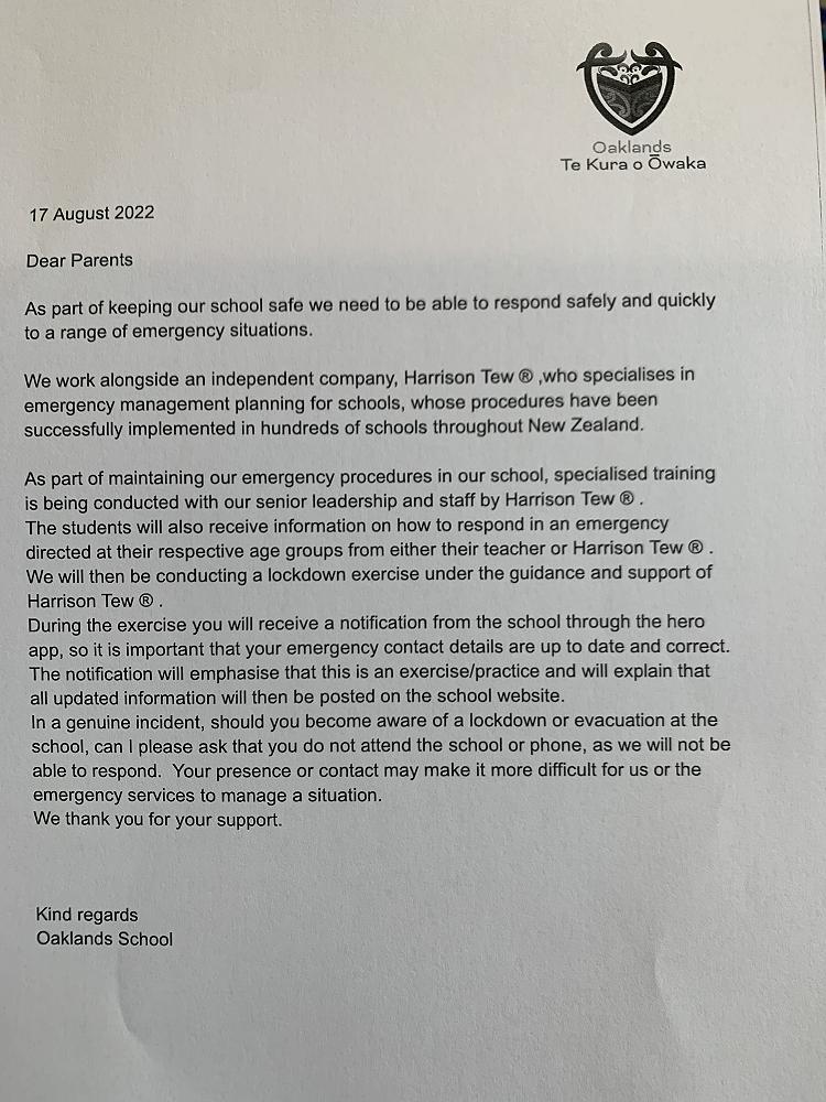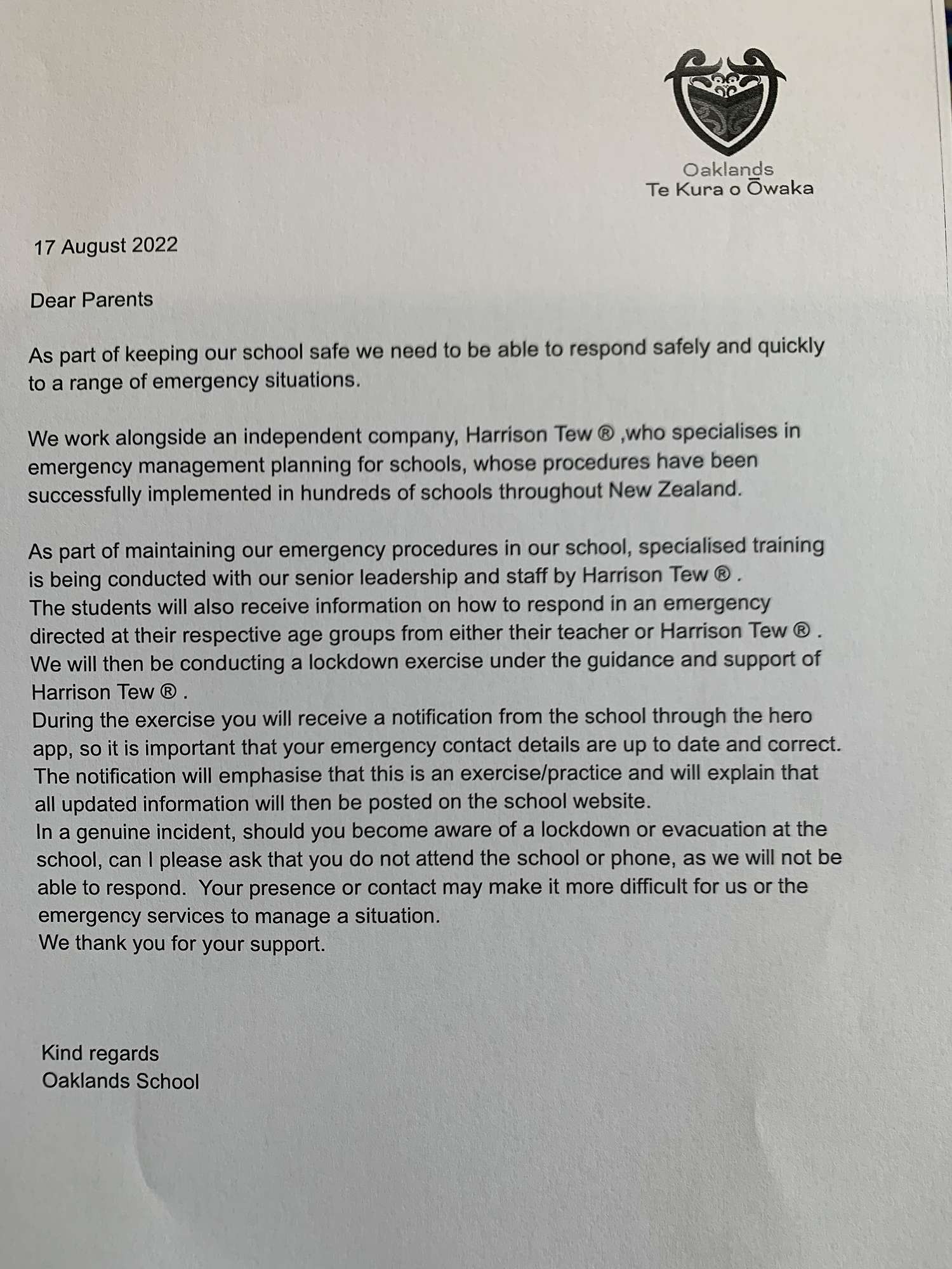 Lockdown Practice - Oaklands School (staff and students) will be having Lockdown training and a Lockdown practice during the morning of Monday 22 August. There is a photo below of the notice.