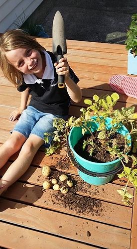 350 buckets, 1000 litres of potting mix and 350 seed potatoes came into the school last year as the Kākano children learned how to know if something is a living thing and what living things need to thrive.