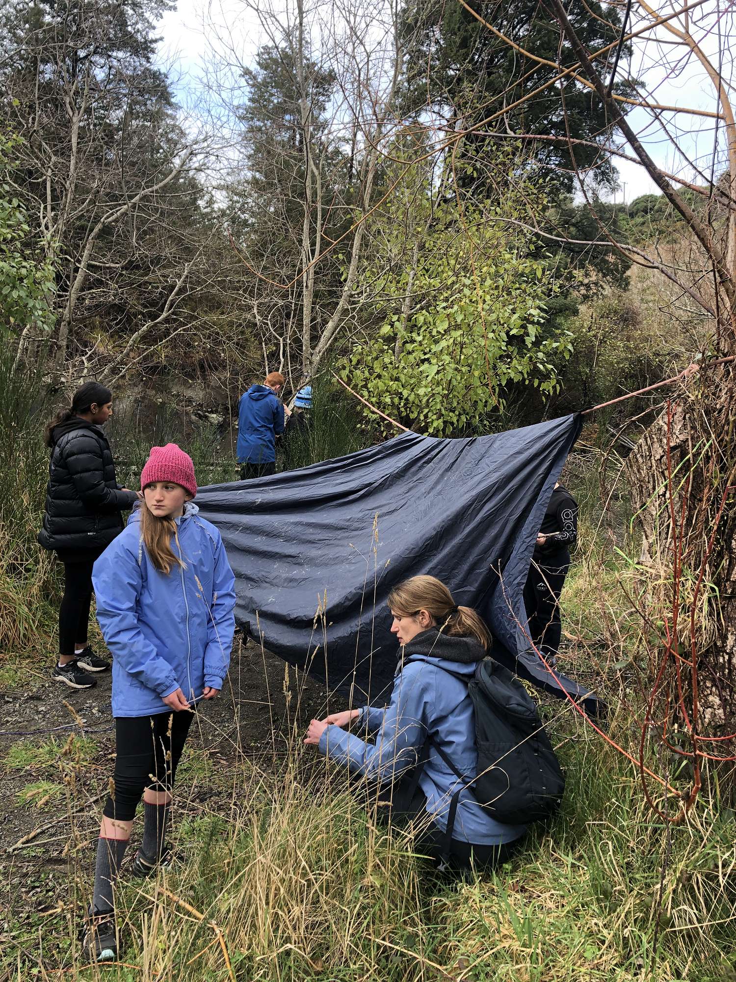 Bivvy building - Let's pretend: you're stranded in the wilderness and there's a storm approaching, how will you protect yourselves? Students were given a base selection of items to create their bivvy. Using the giant playing cards, students had to auction for more items to ensure safety. Students had a real talent for pitching their often extremely creative bivvy coming up with some very quirky ideas.