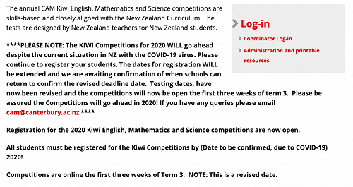 2020 Kiwi English, Mathematics and Science competitions. (Covid-19 Update)