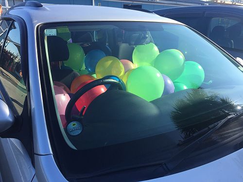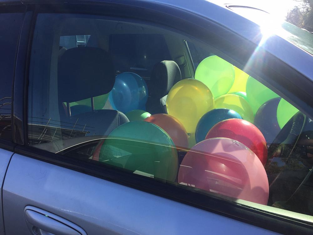 How many balloons are in Mr Brown's car?