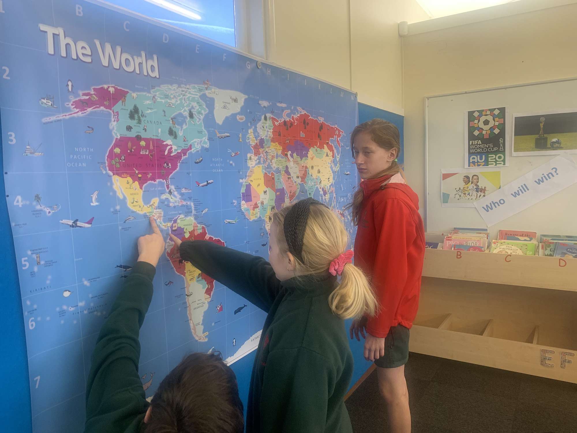 The new world map has been very popular with the children visiting the library. They love looking for countries and how far away they are. It also shows animals and popular sights from countries.