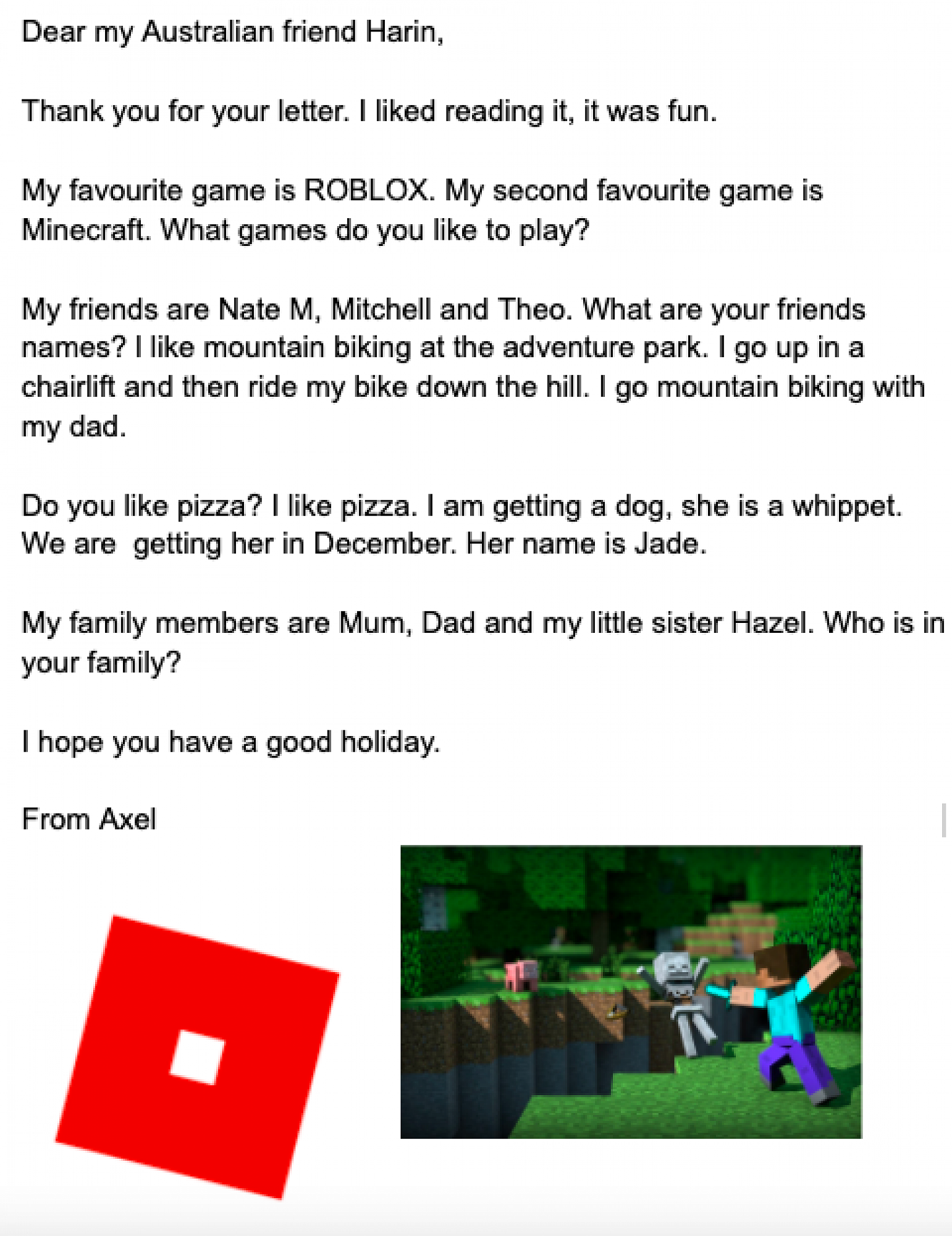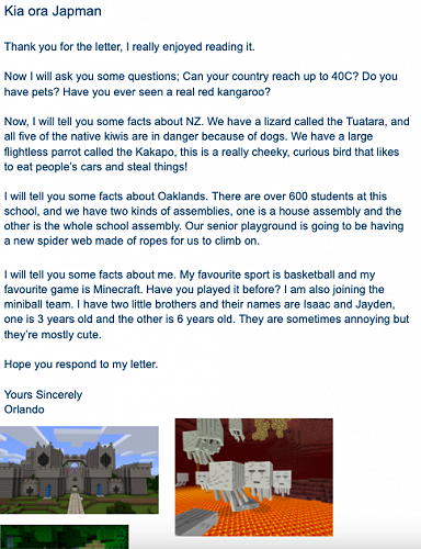 Some of the Huatau learners have been exchanging letters with children from a school in Perth. An ex-Oaklands student is now at this Australian school and her teacher contacted the Huatau teachers asking for penpals.