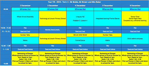 Swimming every afternoon. Please ensure that students have togs, towel every day.