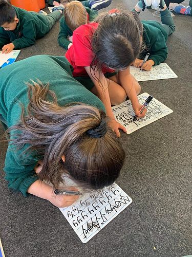 This week we have been listening to and developing the confidence to have a go at the school Karakia for the beginning and end of the day. It has been so impressive to see the students stepping up to take on the lead role for our kai karakia. The students do not need prompting anymore; they are able to take the lead, stand and say the karakia. We are really lucky to have the support of Whaea T each week to share her knowledge and enthusiasm Te Reo Maori. She is able to relate to the students with learning the language and makes each session interactive and supportive.