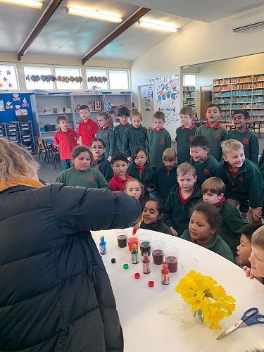 This week's experiment was “Colour Changing Flowers”. The students were given a daffodil in a cup of water. They then added drops of food colouring to the cup. In time, the daffodil began to absorb the coloured water as it became thirsty. As the food colouring moved up the daffodil it began to change colour. We found that the blue food colouring worked the best as it was easy to see as it changed around the tips and made stripes in each petal of the daffodil. During our planning sessions students were able to share what happened, bringing in WOW words to build up a bank that they could use in their stories. It is great to see the students thinking about the process of what happened, how they can add this into their story and capture the readers attention. We are continuing to work on using full stops and capital letters in the correct place.