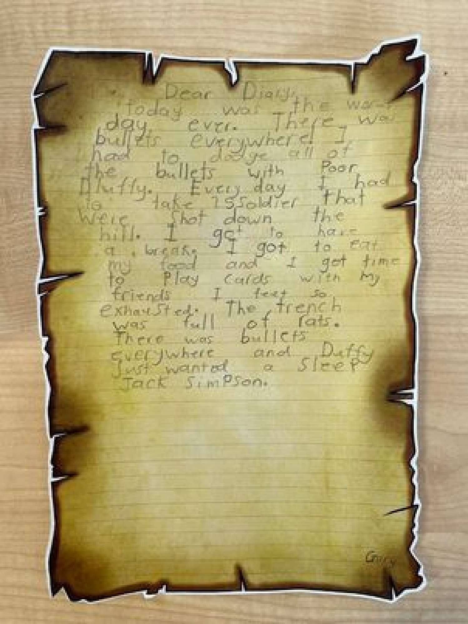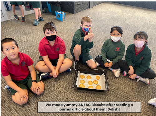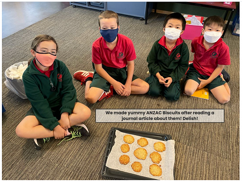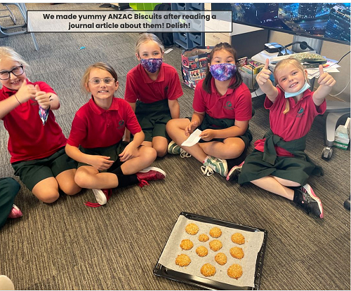 Lily Riding - "in Writing we wrote about ANZAC. We made a diary from the point of view of an ANZAC soldier called Jack Simpson. He helped a lot of soldiers up and down Shrapnel Valley. Then we got to make ANZAC biscuits. They were yum!"