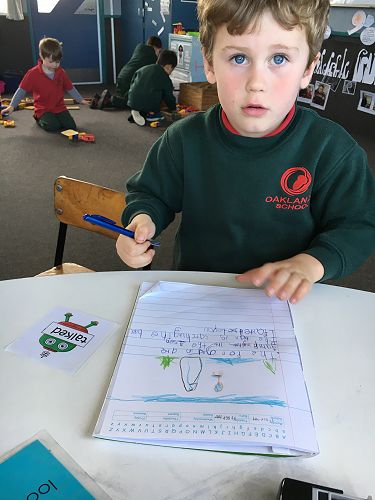 There are many opportunities to write. The Alphabet Space and Writing Spaces are specifically designed through the reflection of the week. Other Action Stations, allow for ideas to happen 'on the spot' i.e a shopping list in the Whanau Corner, the Outside Space when making lists of whose turn it is next.
