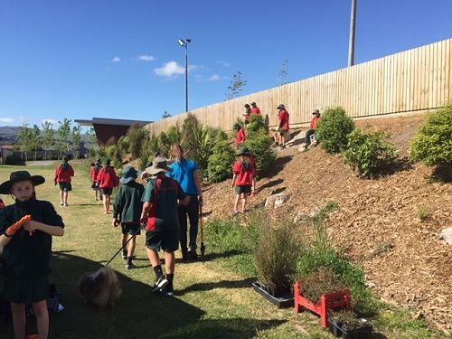 On Monday the Year 7's became Junior Park Rangers for the morning and worked with Amanda Black from the Christchurch City Council Park Ranger team to plant, weed and survey the area around Westlake Park. This morning we did a clean up of the area behind the Library at Halswell Domain and planted some native plants in the garden there. For the rest of the week the Year 7's are gathering student voice about future playground designs and creating possible designs to share with the rest of the school and the Board of Trustees.