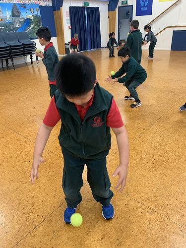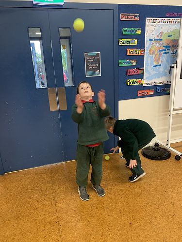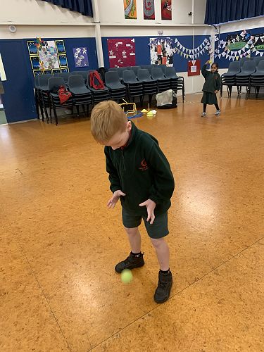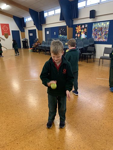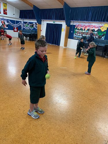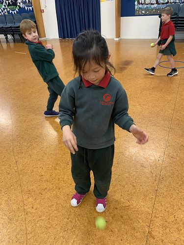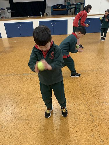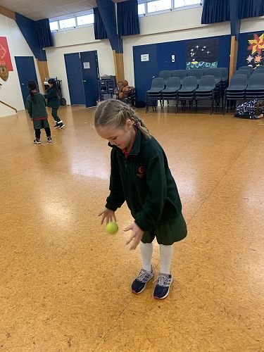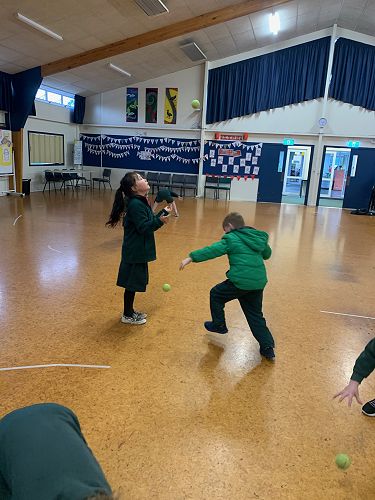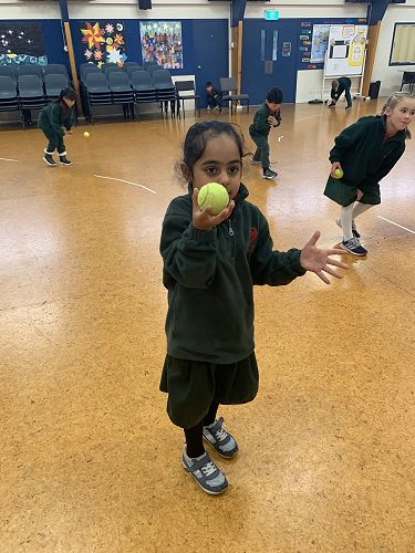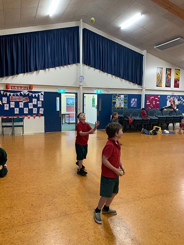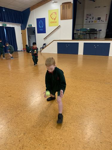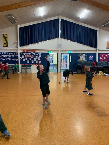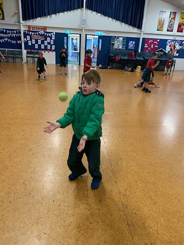 Each Thursday we enjoy a session with visiting coach Hugh from Kelly Sport. Hugh has been teaching us a range of games requiring little or no equipment. This Thursday, Hugh taught us the techniques for catching a ball. We are to catch the ball using a cup, not a crocodile mouth. Hugh was very impressed with how well the Year 2s did with catching.