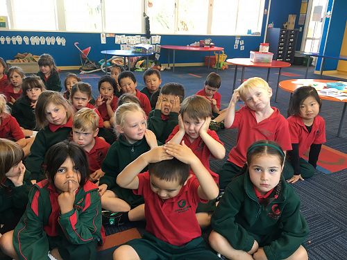 We talked about what makes us happy and how that looks on our faces (smiles). We also talked about what makes us sad and how that looks on our faces (frowns). We shared ideas of strategies we can use if we are feeling sad or someone is feeling sad to make them feel better. Some of the strategies were to play a game with friends, help others if they are hurt, smile at each other and include others in activities.