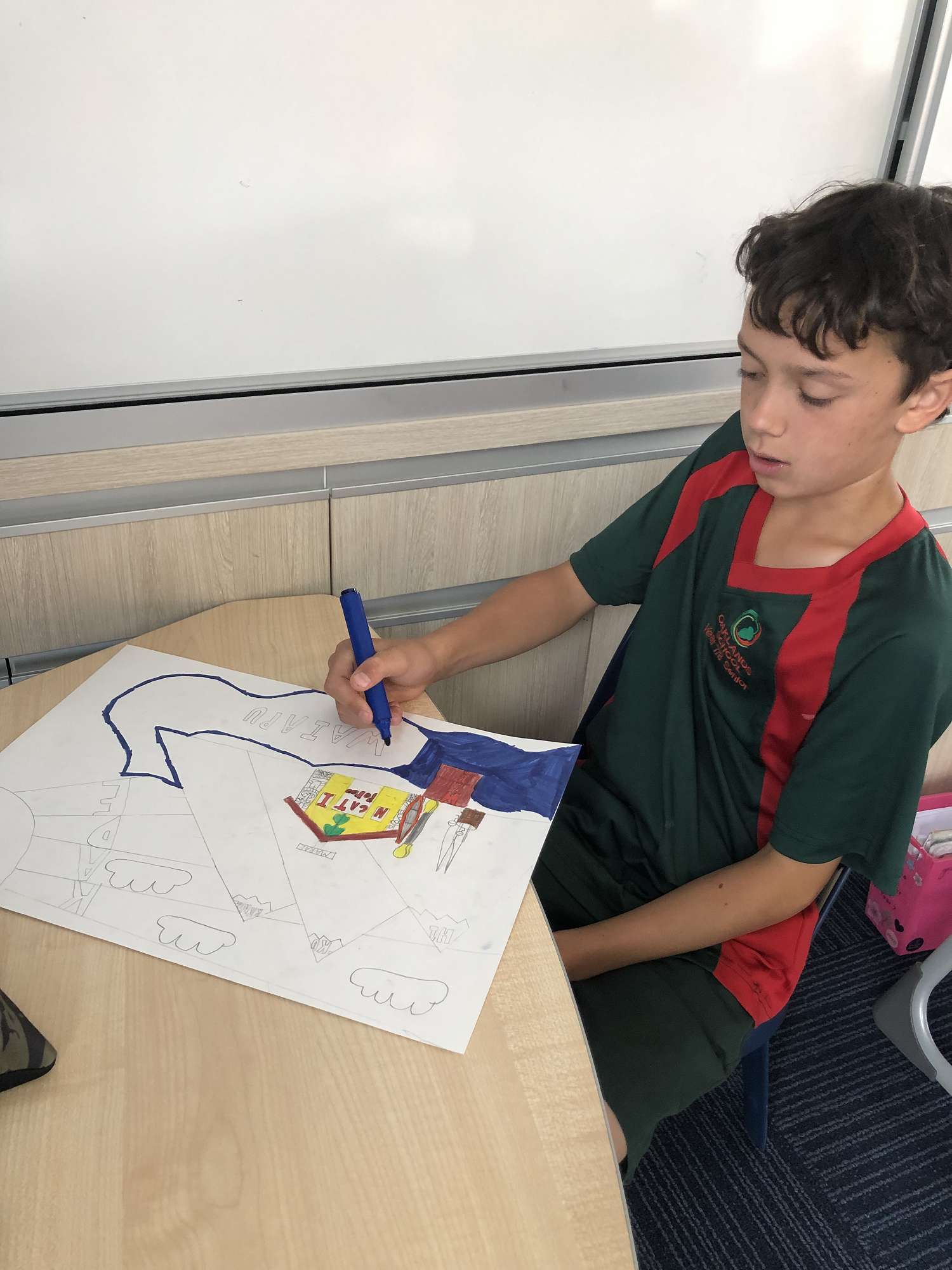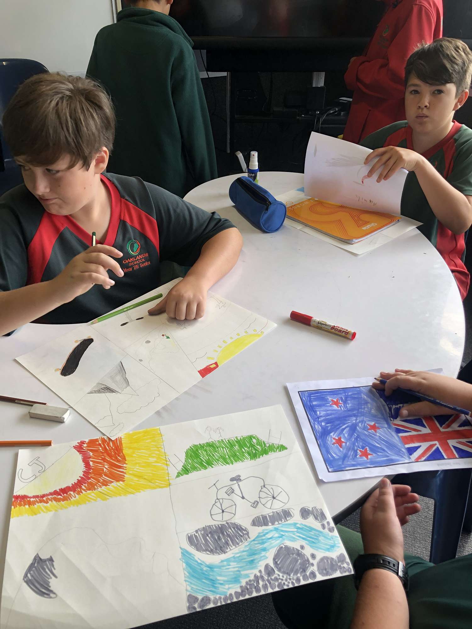 The students worked on making a visual pepeha. They included a maunga (mountain), awa (river), waka (transport), whānau (family) and ingoa (name). A lot of discussion and connections were made with all the students.