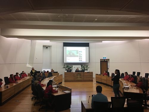 We then did a fun activity about budgeting for an event, park or graffiti management. After that we shared or budgeting with everyone, we went up to the council chambers. We learnt about decision making. After that, we had lunch at Hachi Hachi, and bused back to school.