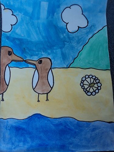 The students have been doing Visual Art, Drama and Music with the hub teachers. Attached is some 'New Zealand Native Bird Art', inspired by New Zealand Artist Don Binney.