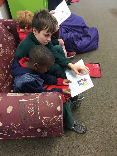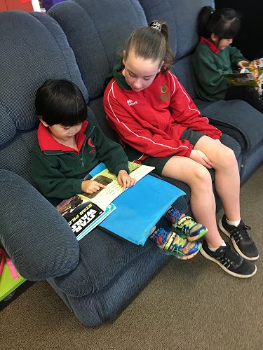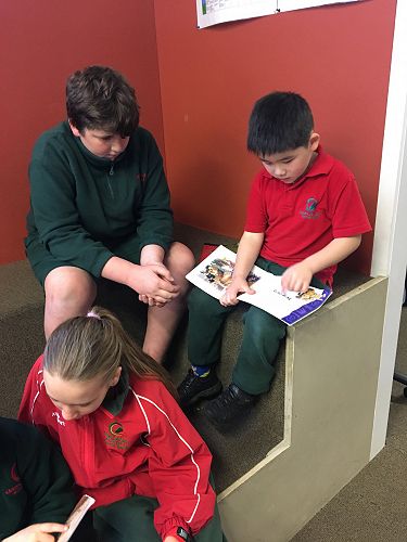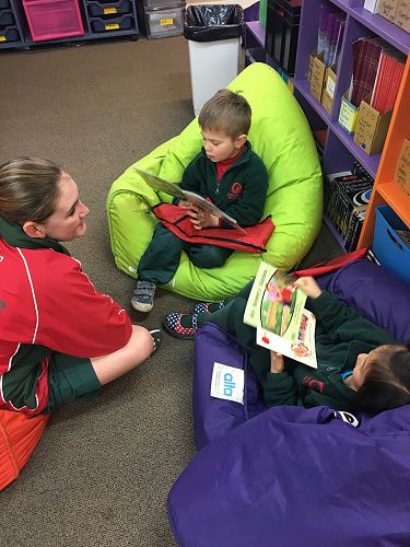 We got to show our big buddies what awesome readers we are. We have been working so hard on our reading all term and this is reflected in the results we have had with our students reading. We read our buddies a book we knew well. Then our big buddies read us some books to! Check out the photos.