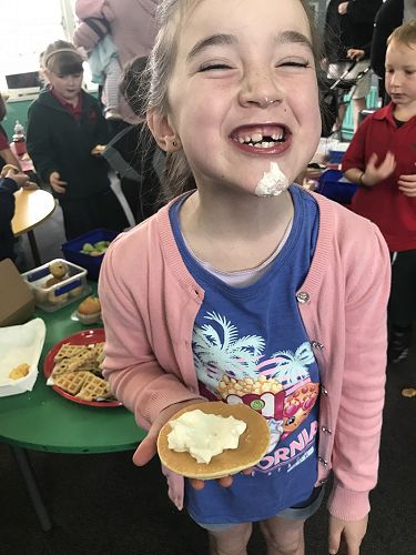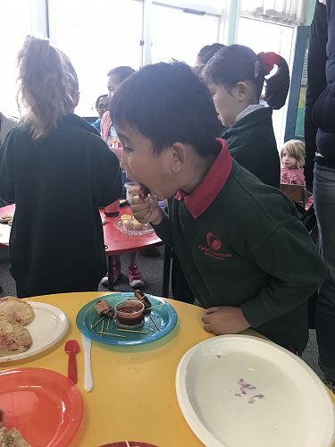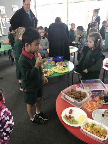 To celebrate our end of term 3 - Hub 1 had a shared kai. Before we ate we sung Tohora Nui to our parents. We also said a karakia (a 'thank you' for our food). Our karakia is: