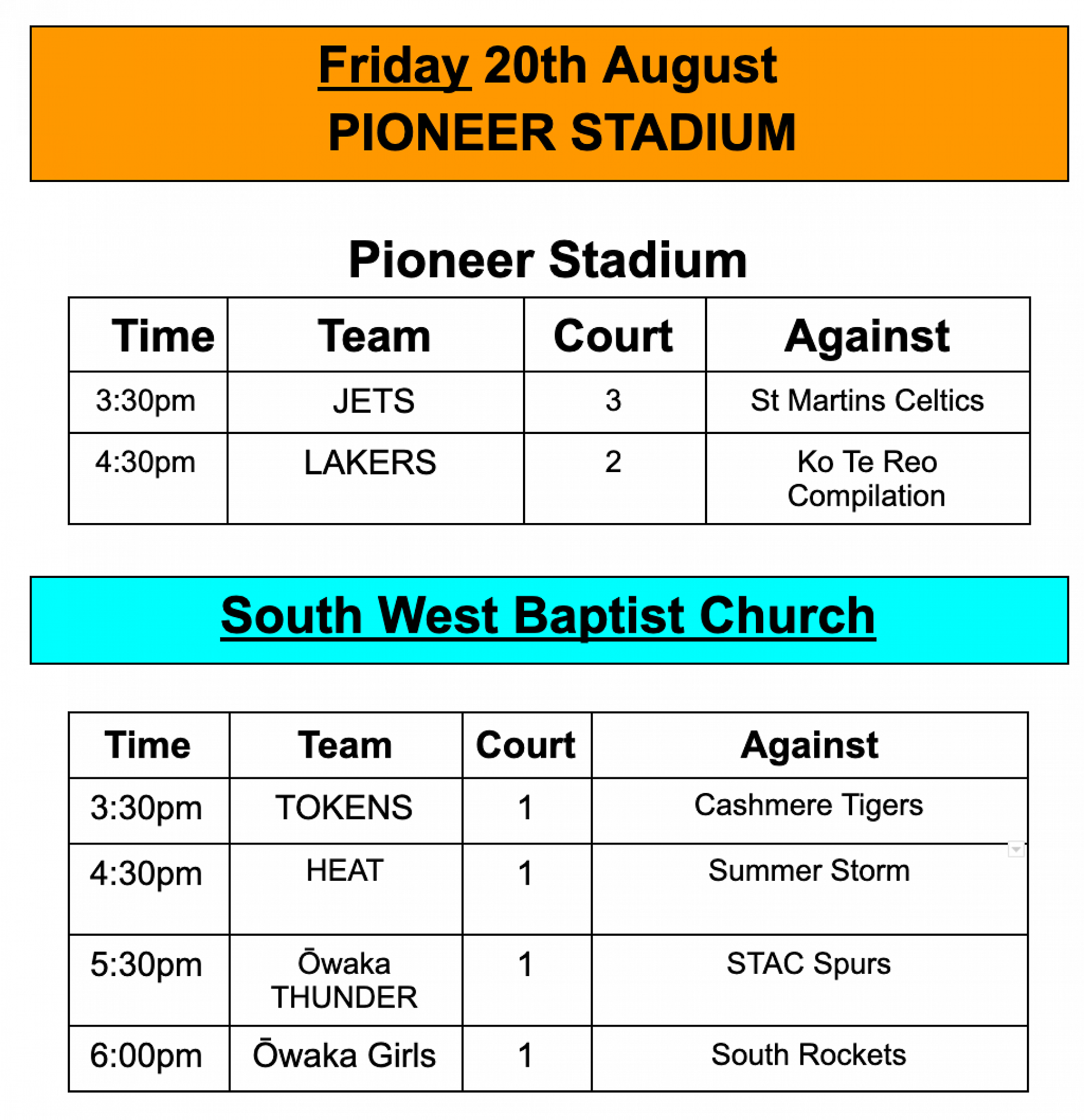 2 teams are playing at Pioneer whilst the other 4 are all playing at the South West Baptist Church. Please can you ensure you let me know if your child is unable to play so we can organise replacements from our other teams if needed.