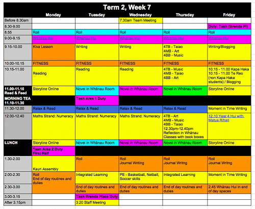 Photo by Tash Baker Year 4 Week 7 Timetable Tash Baker — June 9th, 2017 Please check out the timetable of what is happening next week. Gallery