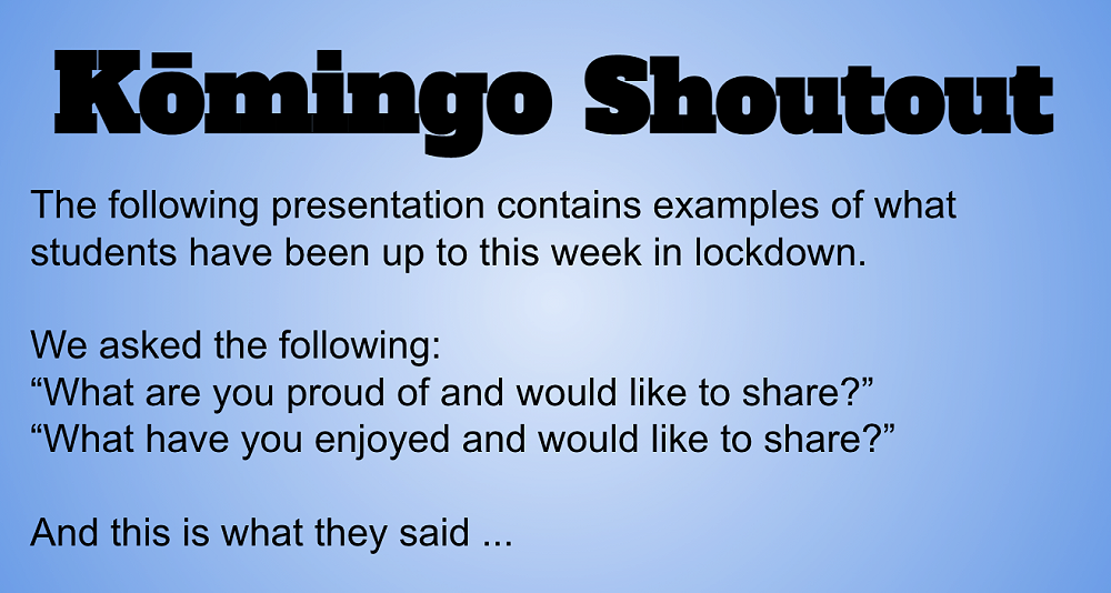 We feature the writing of a Kōmingo student who took the opportunity to do the 'news report' activity.
