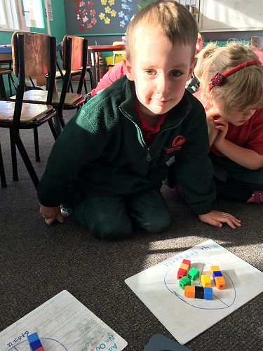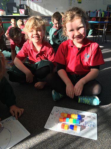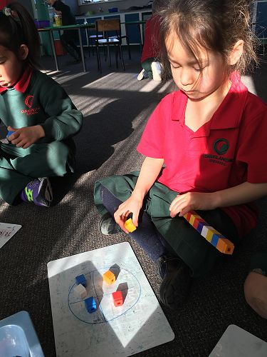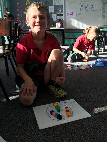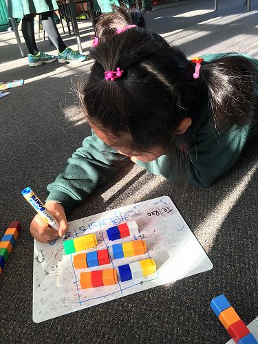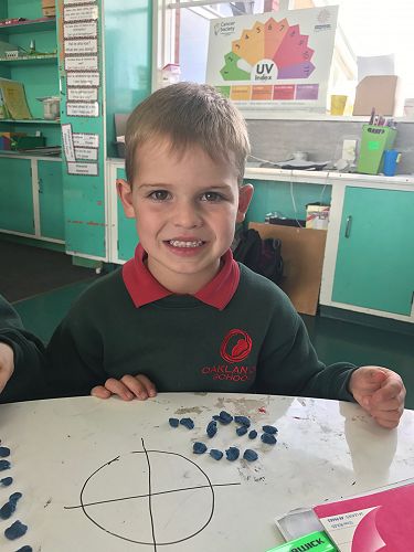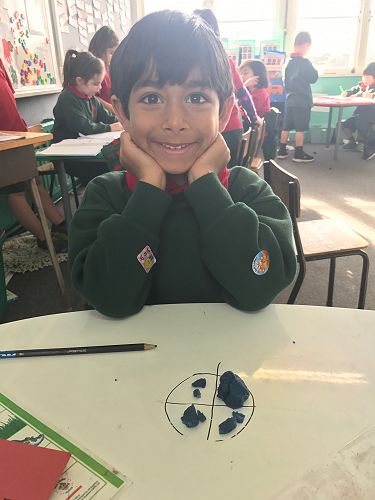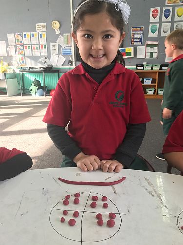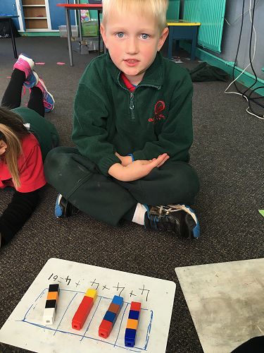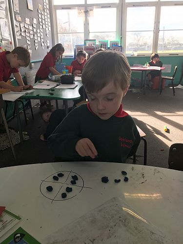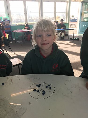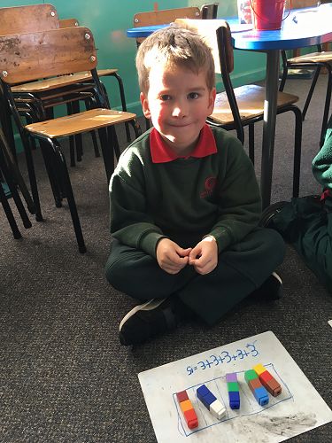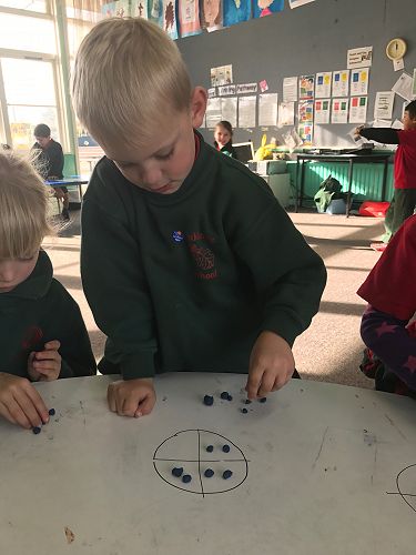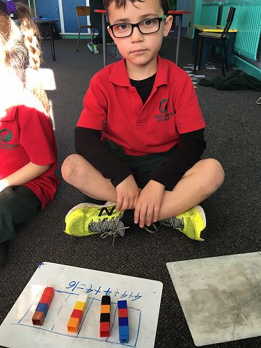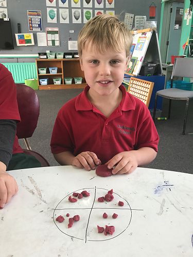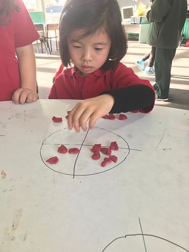For example "I have 16 jellybeans to decorate my cake (which has been split into quarters). How many jellybeans will be on each part of the cake?"