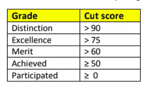 The image below shows the percentage score that students needed to achieve each award.