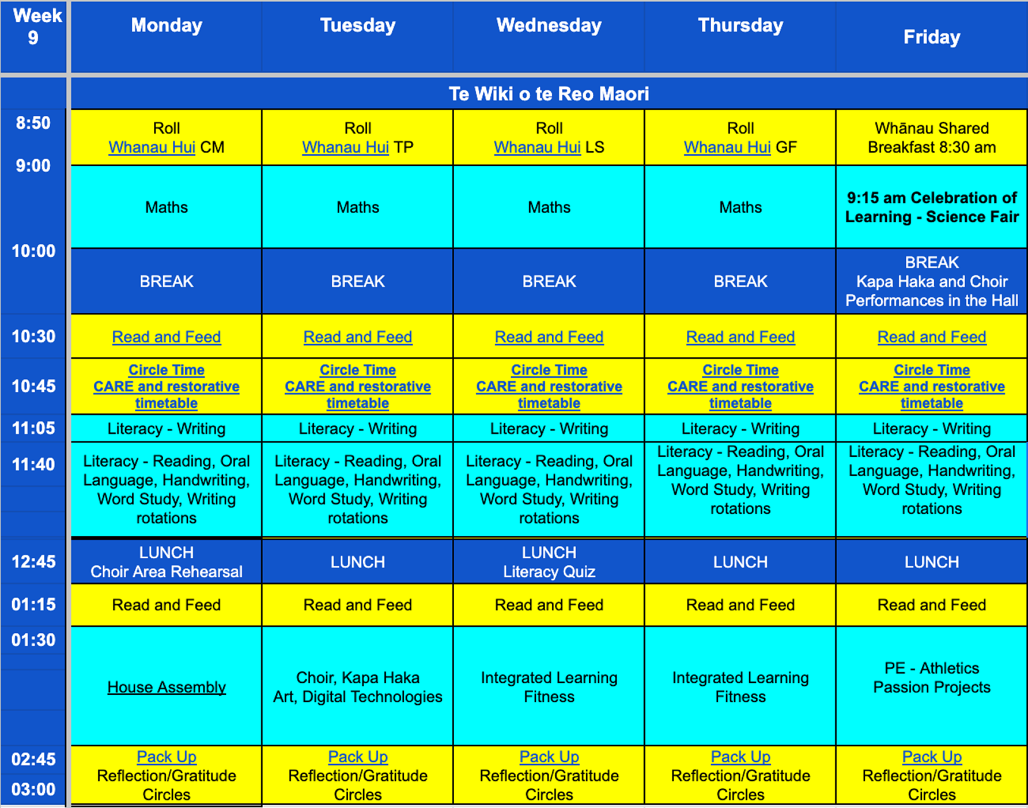 Week 9 Timetable