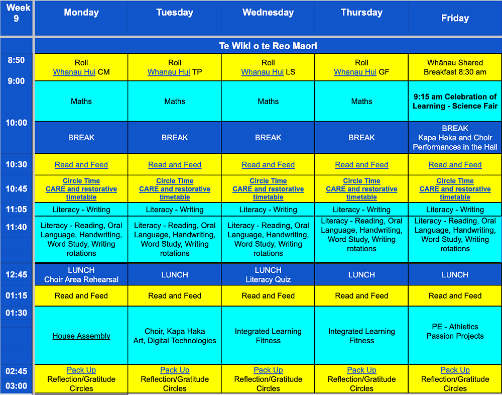 Whānau Shared Breakfast, Celebration of Learning - Friday 15 September. From 8:30 we will share breakfast (please bring a plate of food to share), students will share their learning from 9:15 - 10:00 and then there will be performances by the School Choir and Kapa Haka group in the Hall from 10 - 10:30 am. We hope you can come and join us.