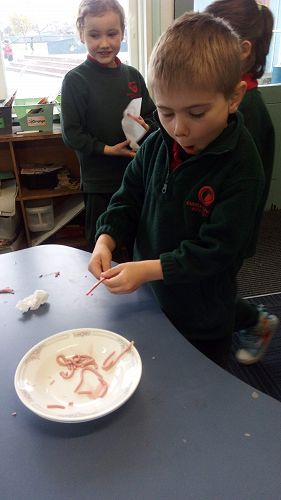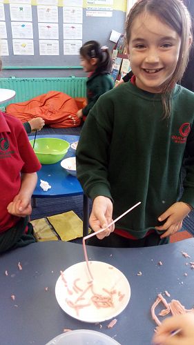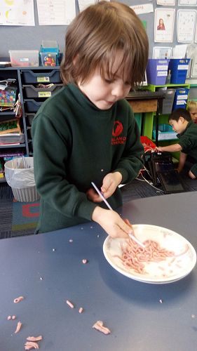 We learnt to use words such as first, second, next, then, after that and finally to tell our readers the order with which they should follow, should they want to make their own worms. Take a look at some of the photos of us making worms below.