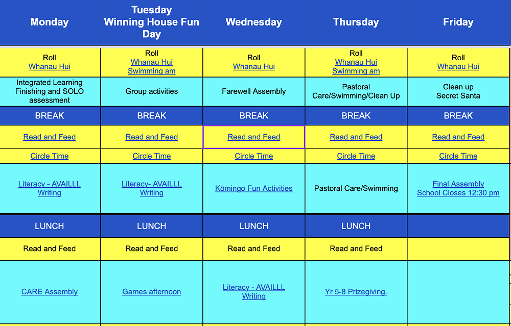 To celebrate the year together, we would love to invite all our whanau to a shared breakfast held in Komingo on Tuesday 13th December. We open the doors at 8:30am when we invite you to come in with your children for a shared breakfast. Please if you are attending we ask if you could bring a plate, with your choice of sharing food for everyone to enjoy. This will continue until 9am when the breakfast will be concluded to continue our usual school day.