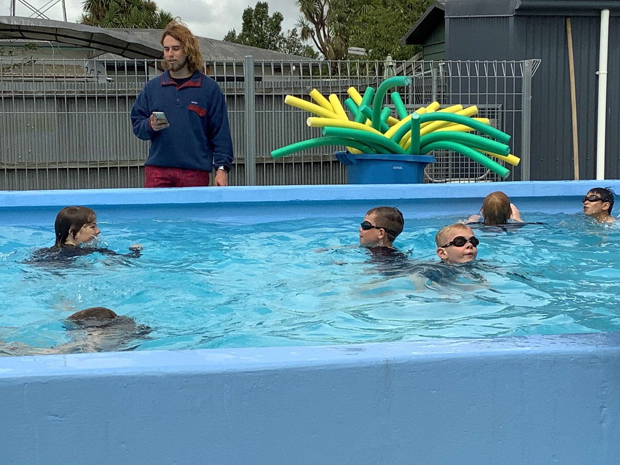 This week at swimming we practiced sculling. We also had to bring clothing to wear in the pool so that we can understand how to keep ourselves safe in case we ever fall into water when we are wearing our clothing. We had to scull and tread water while we removed our outer layer of clothing. This went well and it was interesting to learn how to do this. We also had lots of fun!