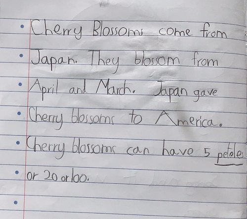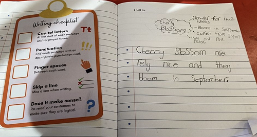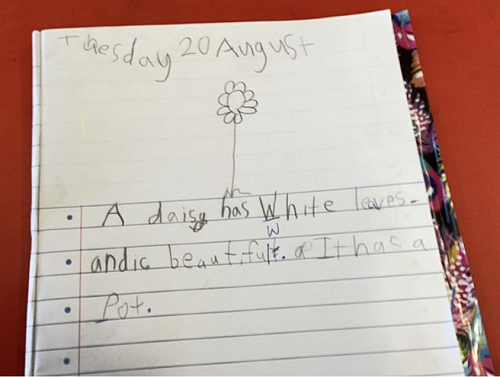 For literacy we are continuing to develop structured literacy skills including phonemic awareness, alphabet and blend knowledge, vocabulary, comprehension and syntax (the way words are arranged in a sentence). All students are making gains through regular access to Stepsweb and through guided reading and writing lessons with teachers. Over the last few weeks our writing has aligned with our integrated learning focus of structures in the living world and this week students have used their five senses to describe blossom, daisies and other plants. Attached are some examples of some of the amazing writing over the last couple of weeks.