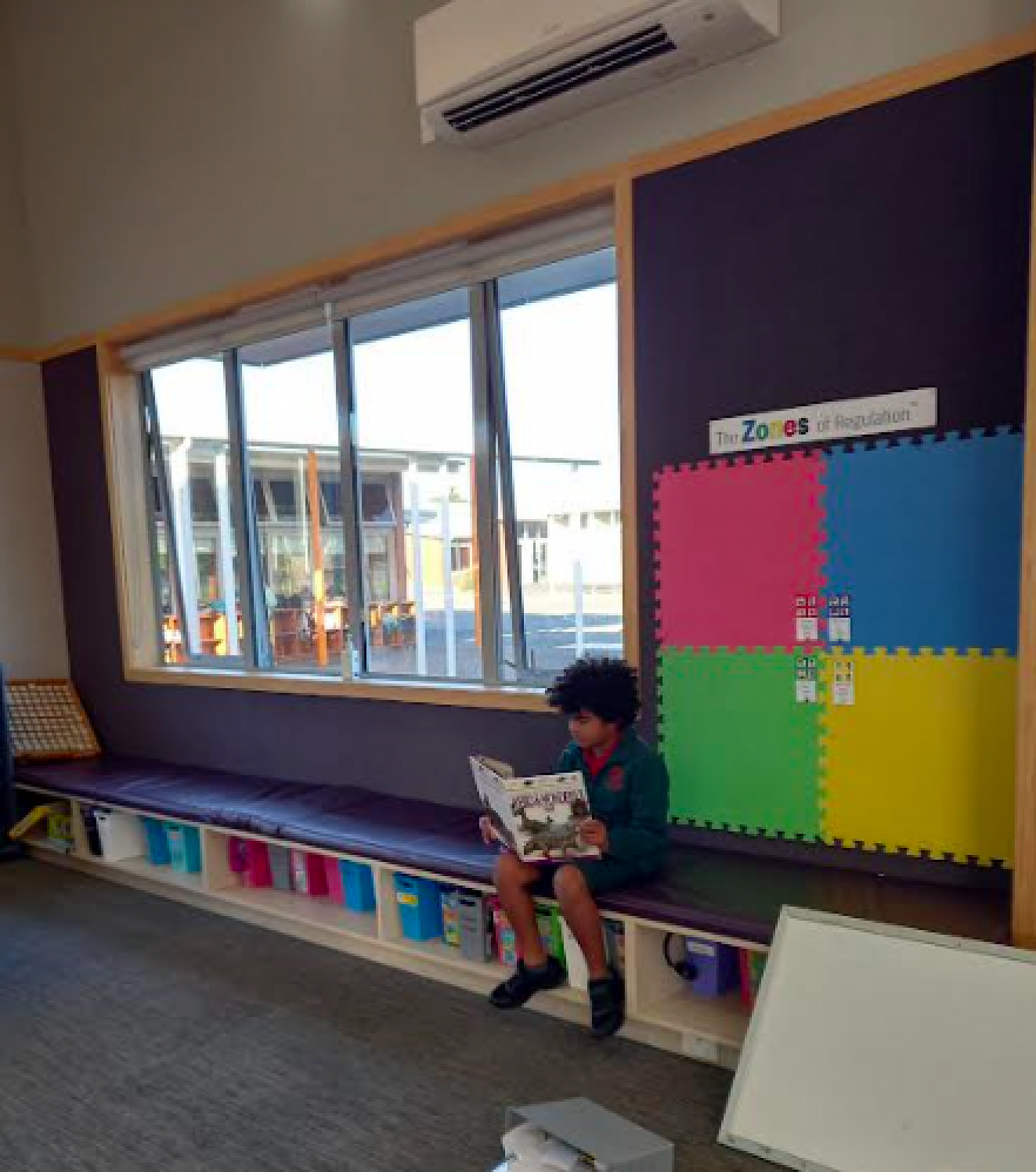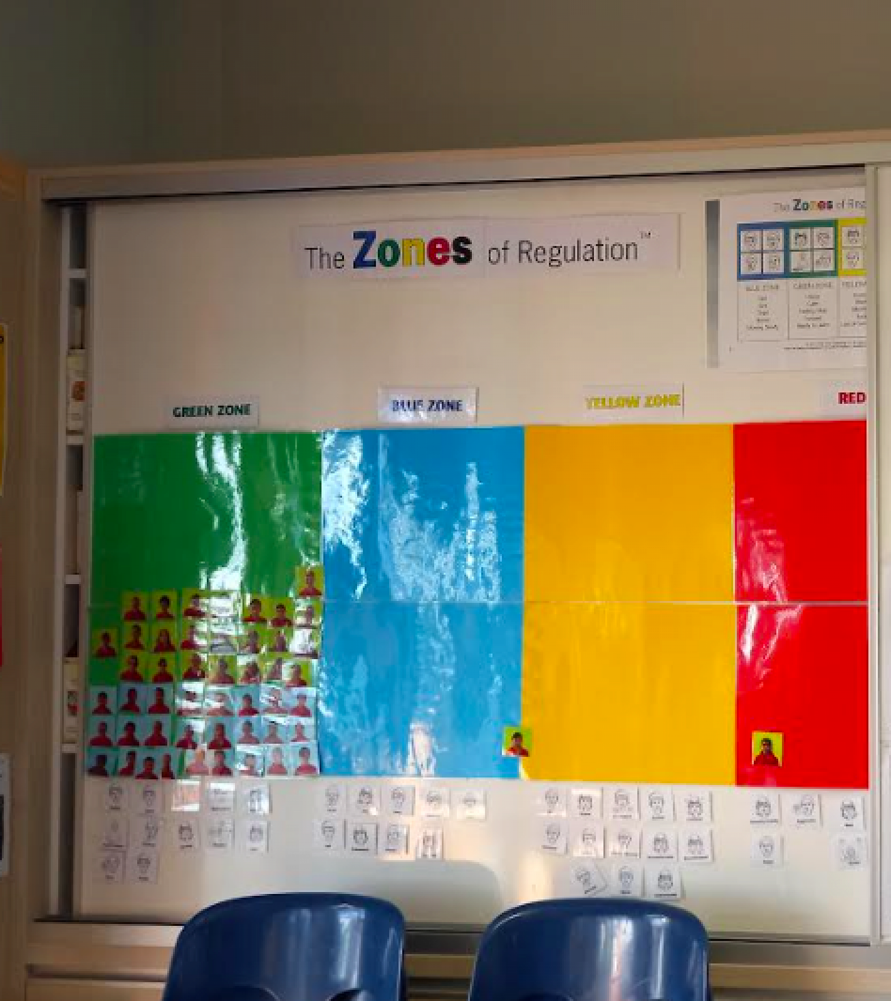 The Zones of Regulation are taught weekly as a whole class and also in smaller groups based on the different needs of students. There is a Zones of Regulation display in each space which students use to check in with themselves, self-reflect and identify how they are feeling.
