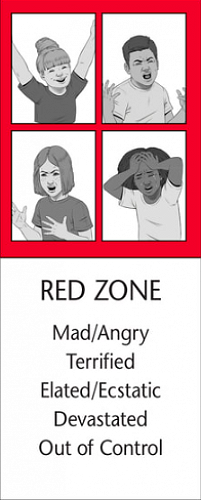 The Red Zone is used to describe an extremely heightened state or very intense feelings. A person may be experiencing anger, panic, terror, devastation or elation when in the Red Zone. The Red Zone can be characterised as being overwhelmed by one's feelings and having a loss of control.